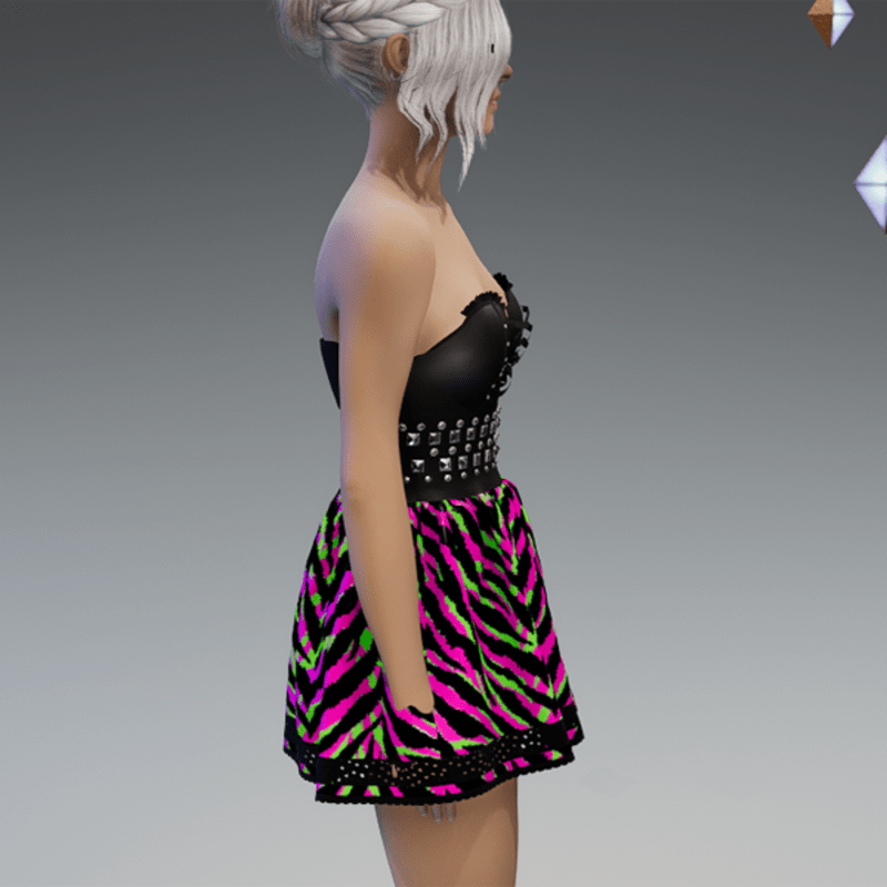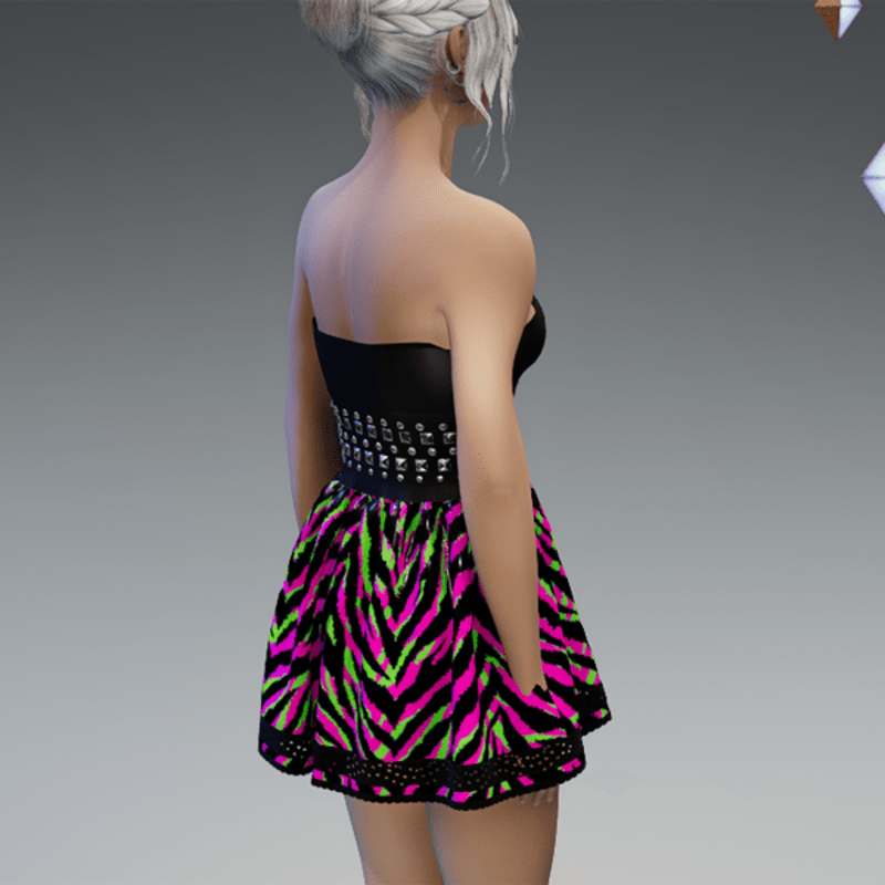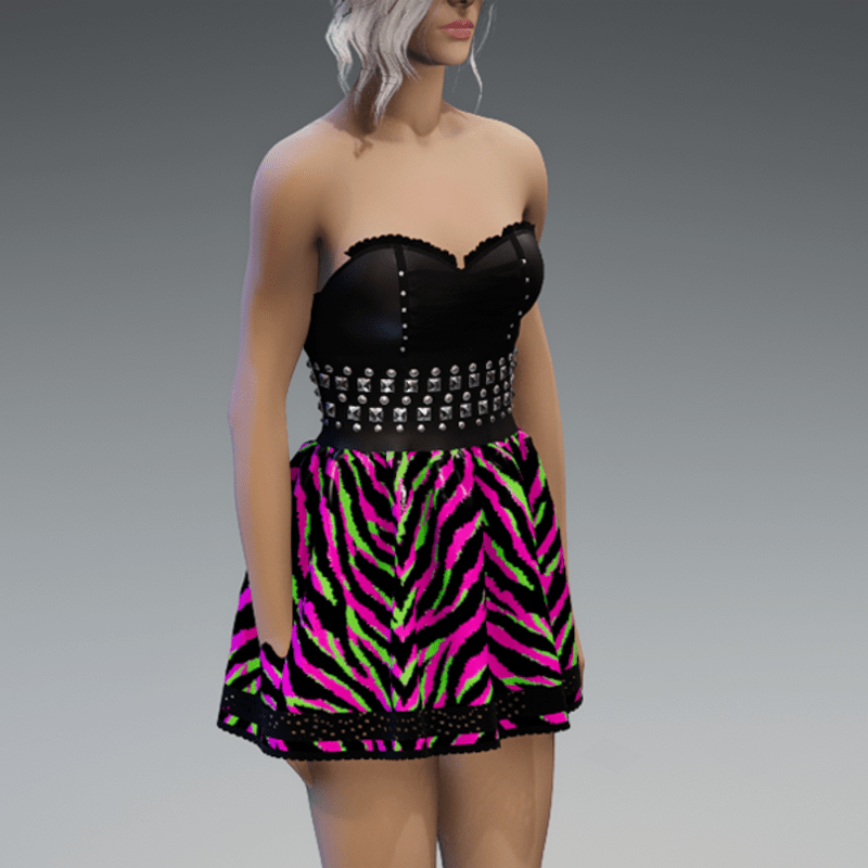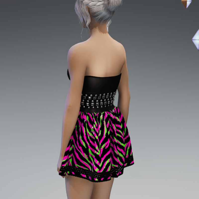 Punky Mini Dress Black & Pink Green Tiger