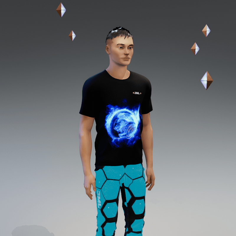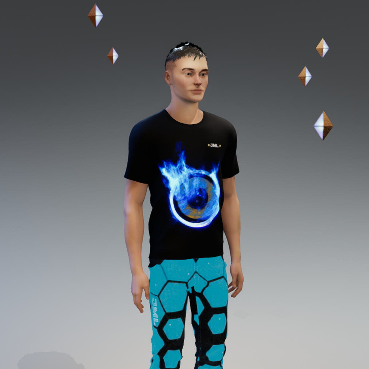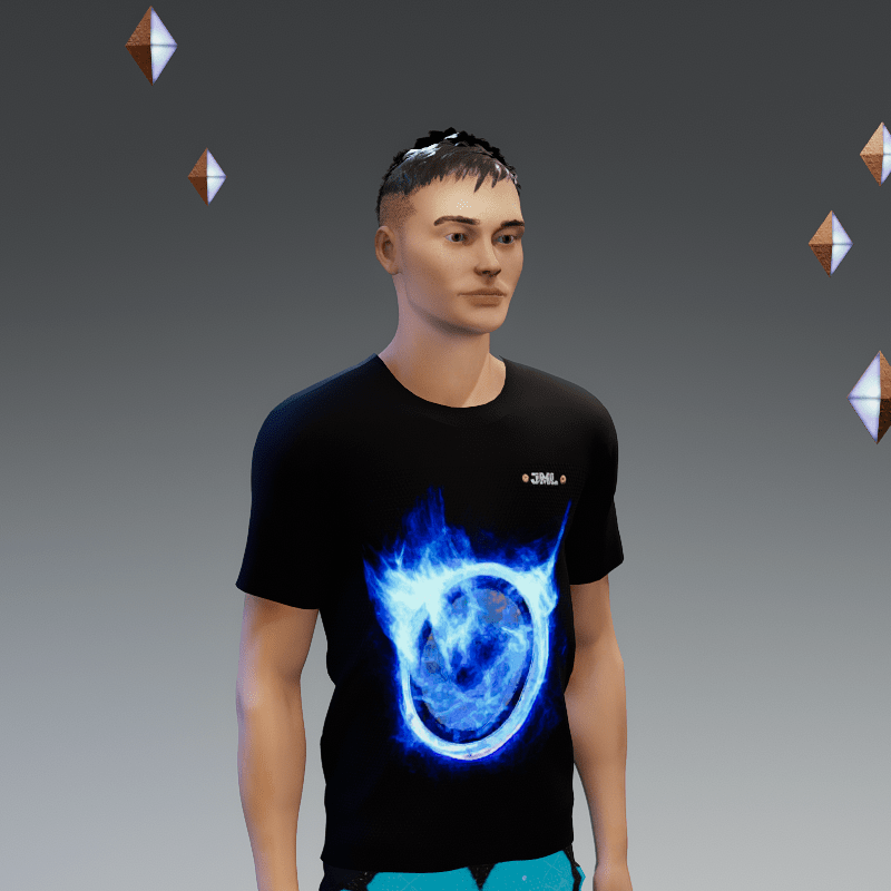 - UNISEX_ SHIRT_ SPEAKERS_ SPINNING_ BLUE ANIMATED_ EMISSIVE_