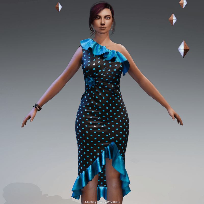 Design fits most female avatars, only needs a bit of simulation but skinny avatars might have a loose fit though.