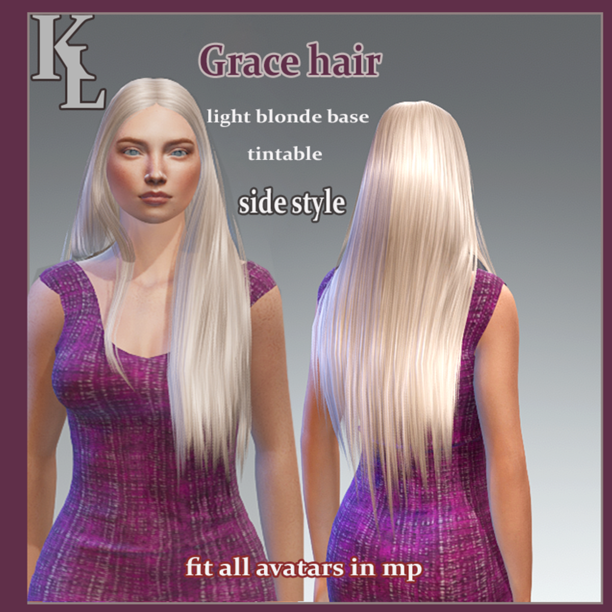 Grace side style-blonde base tintable,check it out the front back style in pics !