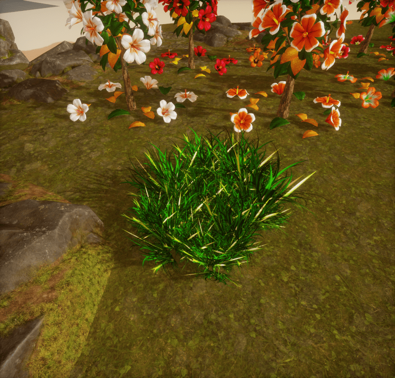 Grass. I finally made 2d grass (just from planes) and made it look good from the top view :) The whites do not show in Sansar. It looks better in Sansar than in my 3D rendering program.