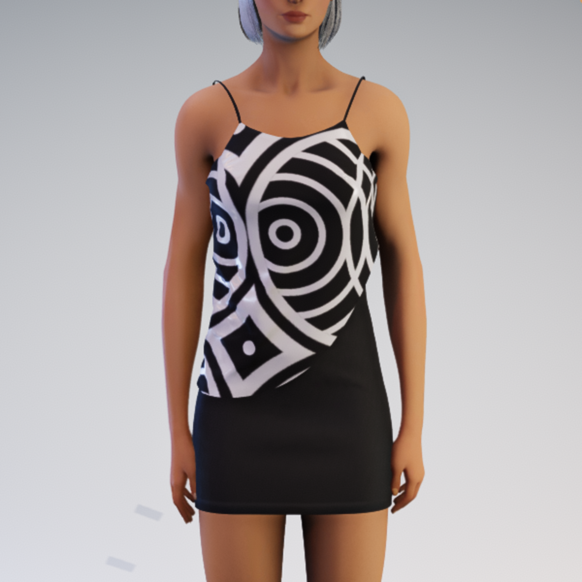 Mini dress with spaghetti straps and a layered print. By Sweet Distractions