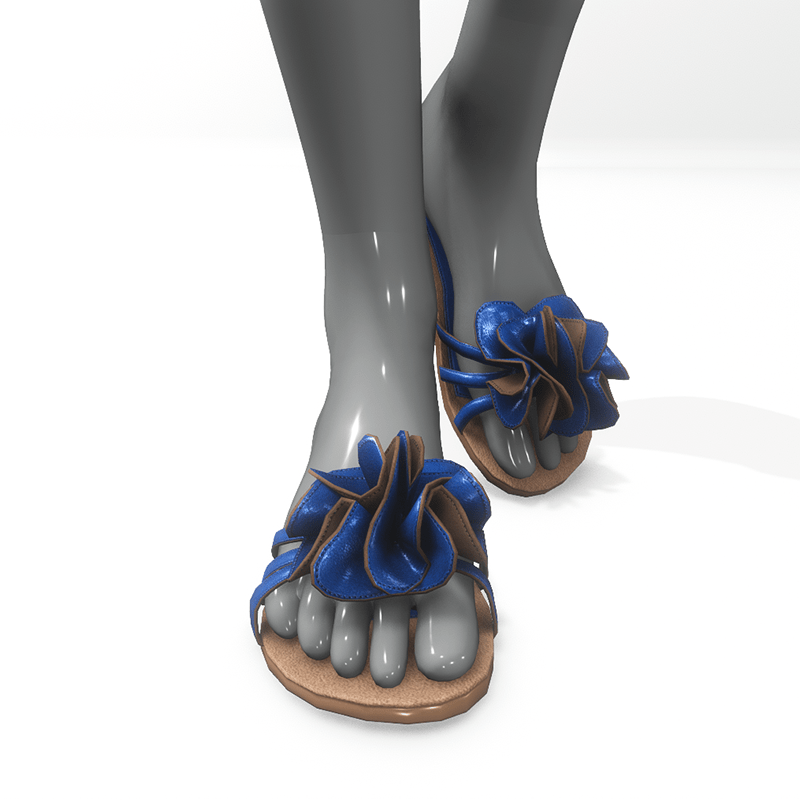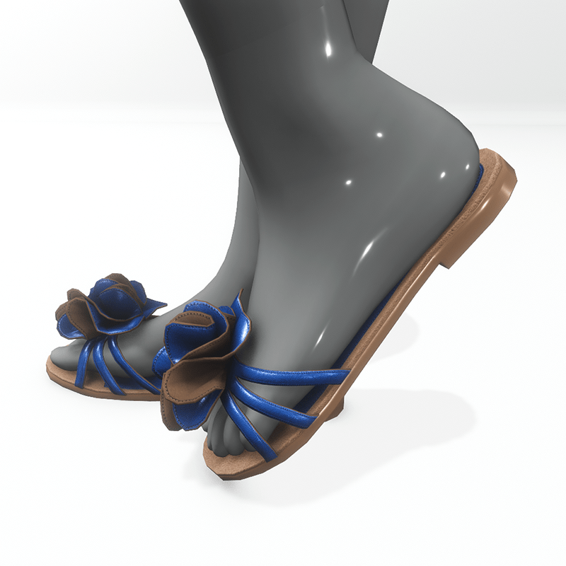 Flat summer shoes for AV 2.0 . They are made of brown and blue leather and are decorated with a large flower. Sandals suitable for the city and the beach, match jeans, light dresses and shorts. Get the free demo before purchasing here: https://store.sansar.com/listings/7302b984-28f2-4c50-91d0-921ca25b0259/av-2---flower-sandals--demo