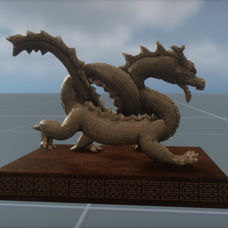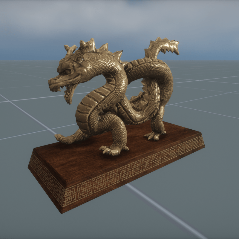 The small Dragon Statue is around 20cm long and has a collision mesh