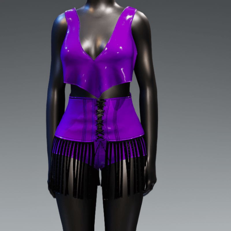 Plastic Shorts and Top Set. Check my store for the matching High Waist Fringe Skirt or check out the emissive version. Get Demo Here: DEMO is not emissive, is only to check fit. https://store.sansar.com/listings/11afd45a-2d53-43b3-8ddd-fec79db88057/plastic--shorts-and-top-set---demo Trying on the available Demo is the best way to assure your satisfaction with quality and fit. The lighting isn't the best in the lookbook and the shoulders seem to fit funny in the lookbook as well, so I recommend wearing the demo in world to see how it truly looks on you. Visit my inworld store experience to find discounted items that or not available on the marketplace and also look for miniature butterflies to find free mystery gifts! https://atlas.sansar.com/experiences/lonaleelancaster/lona Made in Marvelous Designer and can be adjusted to fit most avatars. Please try a demo to assure fit and satisfaction. To learn more about transforming and adjusting Marvelous Designer clothing visit this link: https://help.sansar.com/hc/en-us/articles/115005693363-Fitting-Marvelous-Designer-clothing-to-your-avatar#some-tips