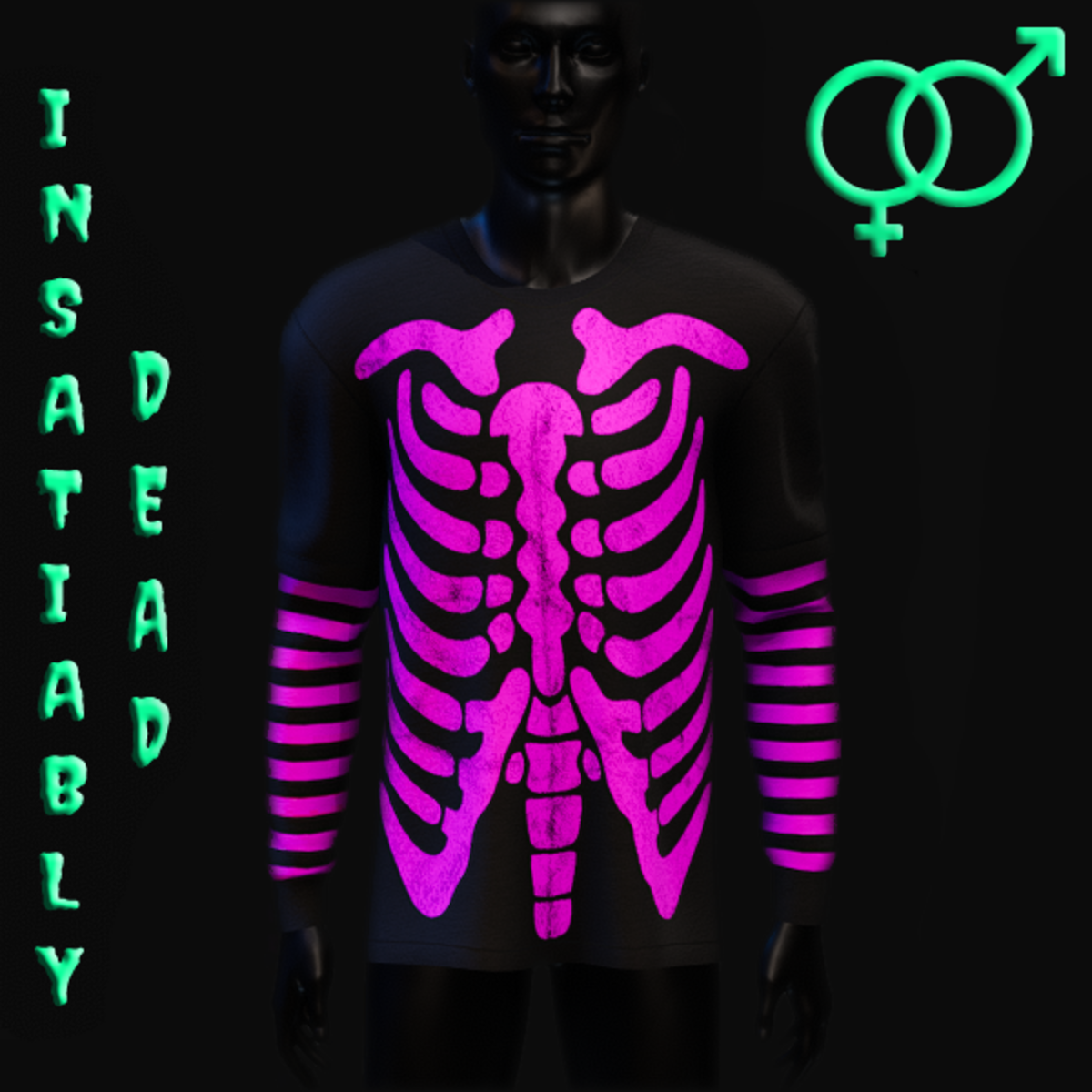 UNISEX SKELE T-SHIRT & ATTACHED LONG SLEEVED SHIRT [PINK]. CREATED IN MARVELOUS DESIGNER WITH AVATAR 2.0. ADJUSTMENT MAY BE REQUIRED! FITTING INSTRUCTIONS CAN BE FOUND BY GOING TO THE LINK BELOW. https://help.sansar.com/hc/en-us/articles/115005693363-Fitting-Marvelous-Designer-clothing-to-your-avatar PLEASE RATE AFTER BUYING! IF ANY ISSUES OCCUR PLEASE CONTACT TEAGAN BROKKEN FOR ASSISTANCE. THANK YOU! <3 <3 GET INSATIABLY DEAD <3