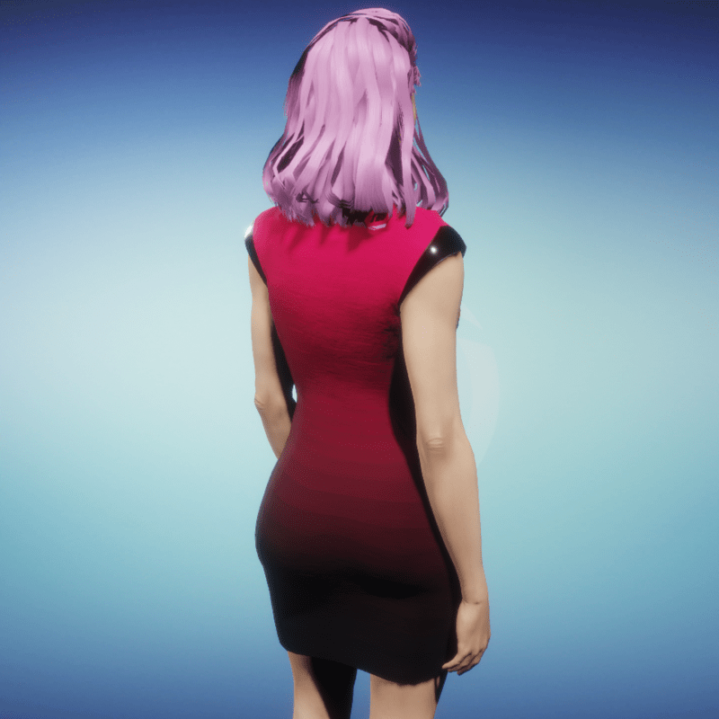 Feel like a goddess in this pink flashy dress, complete with PVC accents.