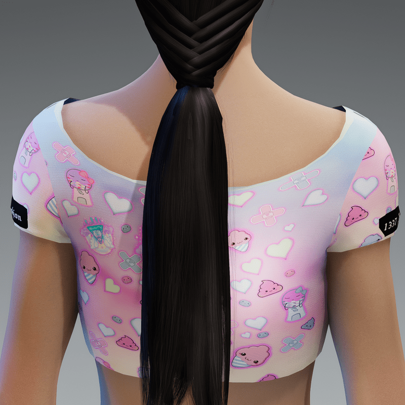 Looking for you next wardrobe favorite? Well, look no further because this crop tee is printed with a 4K Texture and Normal Map and sewn in Marvelous Designer to fit you just right. To top that off not only can you wear it in Sansar, if you like it enough you can cop it in real life! The original all-over design is definitely worth showing off, so don't hesitate to own one of these tees - they're meant to be adored. NOTE: You may need to adjust the tee to get the preferred fit! You can adjust clothing next to the transform tool in the Worn Items Menu. Grab the Tee here: https://1337.fashion/products/all-over-kawaii-rainbow-pastel-print-crop-tee