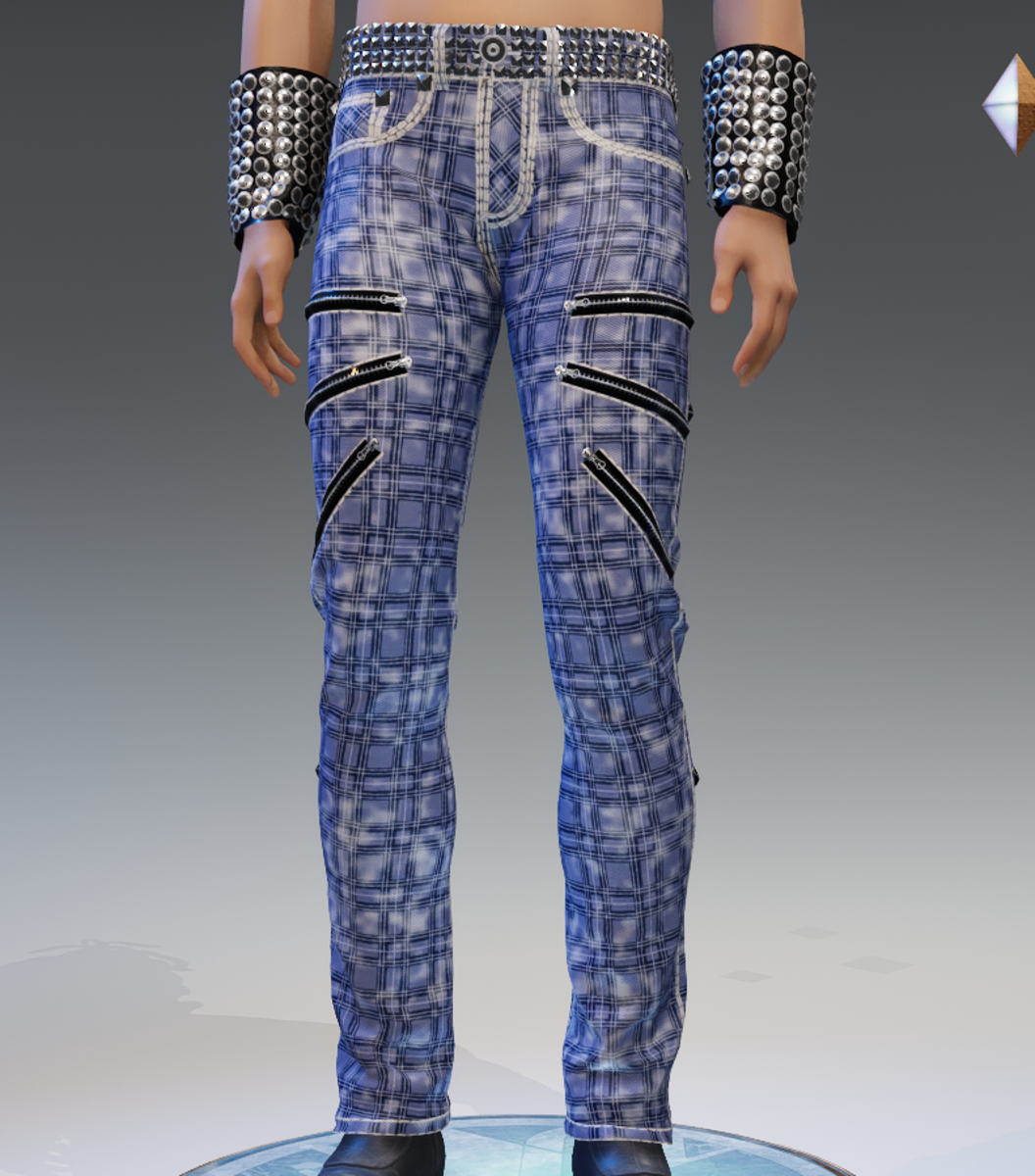 Add to chaos! These Punk Rock Chaos Blue Plaid-bleached double stitch jeans are awesome-cool! Enjoy and have fun! :)