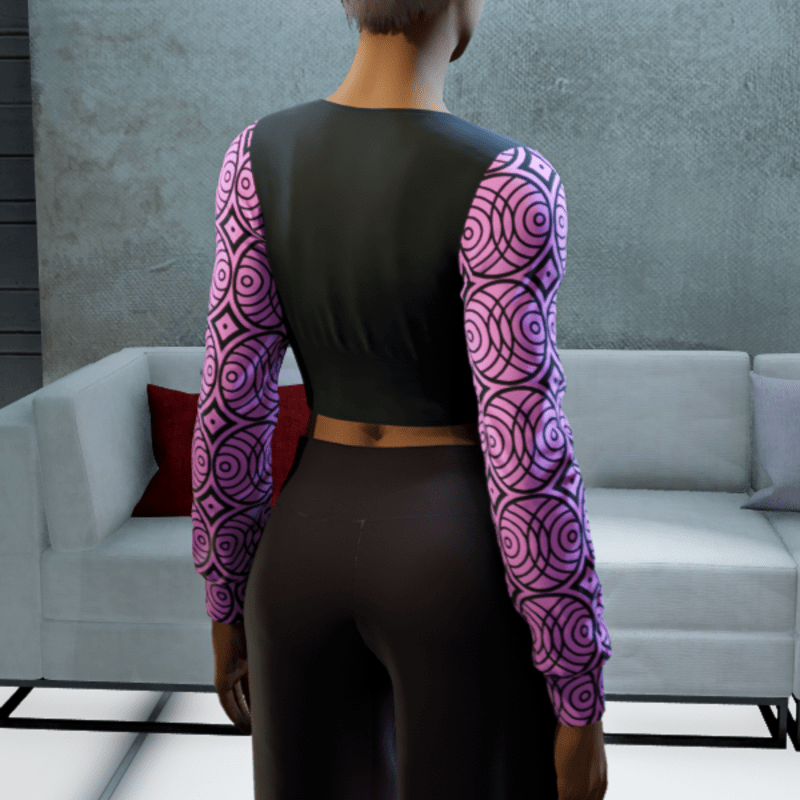 - Cropped V-neck Blouse - Black and Pink Circles