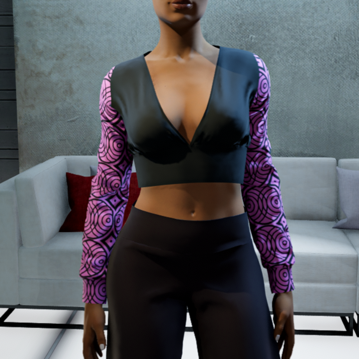Elegant cropped v-neck blouse with modern detailing on the sleeves. By Sweet Distractions