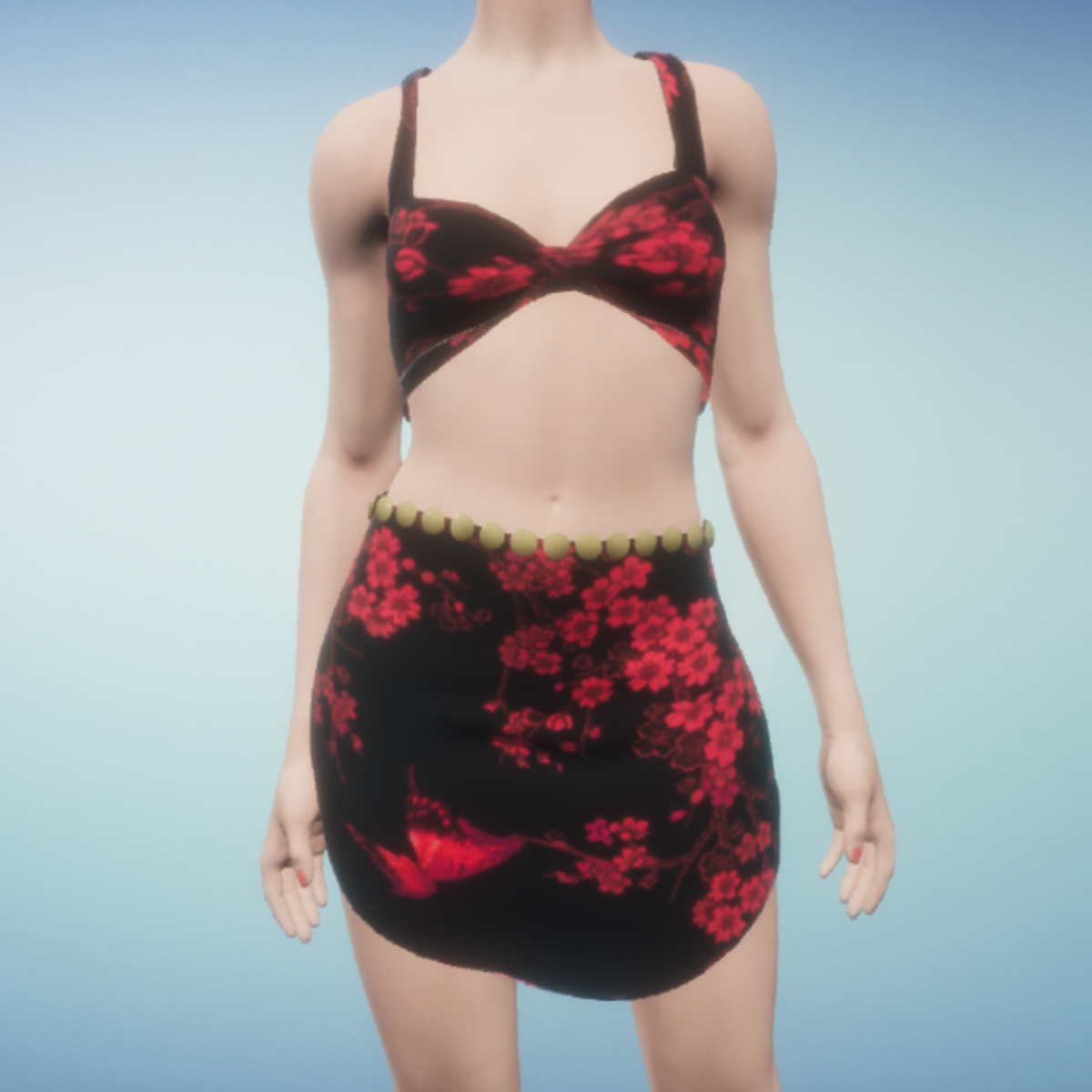 top skirt black red
