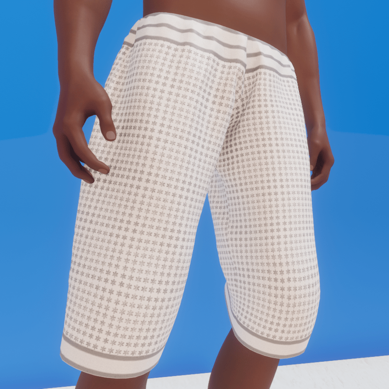 A pair of Bemuda shorts made for the default male avatar. But as it's a Marvellous Designer item it should stretch to fit most avatars.