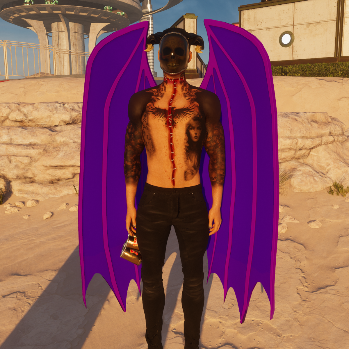 Wings made to fit sansars default male/female avatars (avatars not included), to perform pose pictured you must get the free "Wings of Darkness pose" here- https://store.sansar.com/listings/c782d4d8-7b3c-4806-8efb-ce5347f4ca73/wings-of-darkness-emote and this one here - https://store.sansar.com/listings/f7a0a0b3-c90d-43f0-a349-6a24440096fa/wings-of-darkness-flying-emote