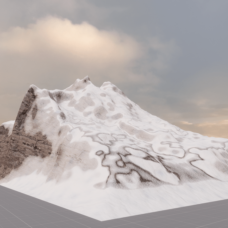 100x100 meters Mt Elbrus terrain to scale 1:100 3 layers + detail shader with snow, volcanic rock and moraines. 46 MB, 32.8k tris, collision. Editable.