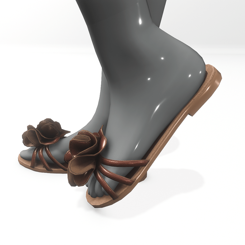Flat summer shoes for AV 2.0 . They are made of brown leather and are decorated with a large flower. Sandals suitable for the city and the beach, match jeans, light dresses and shorts. Get the free demo before purchasing here: https://store.sansar.com/listings/7302b984-28f2-4c50-91d0-921ca25b0259/av-2---flower-sandals--demo