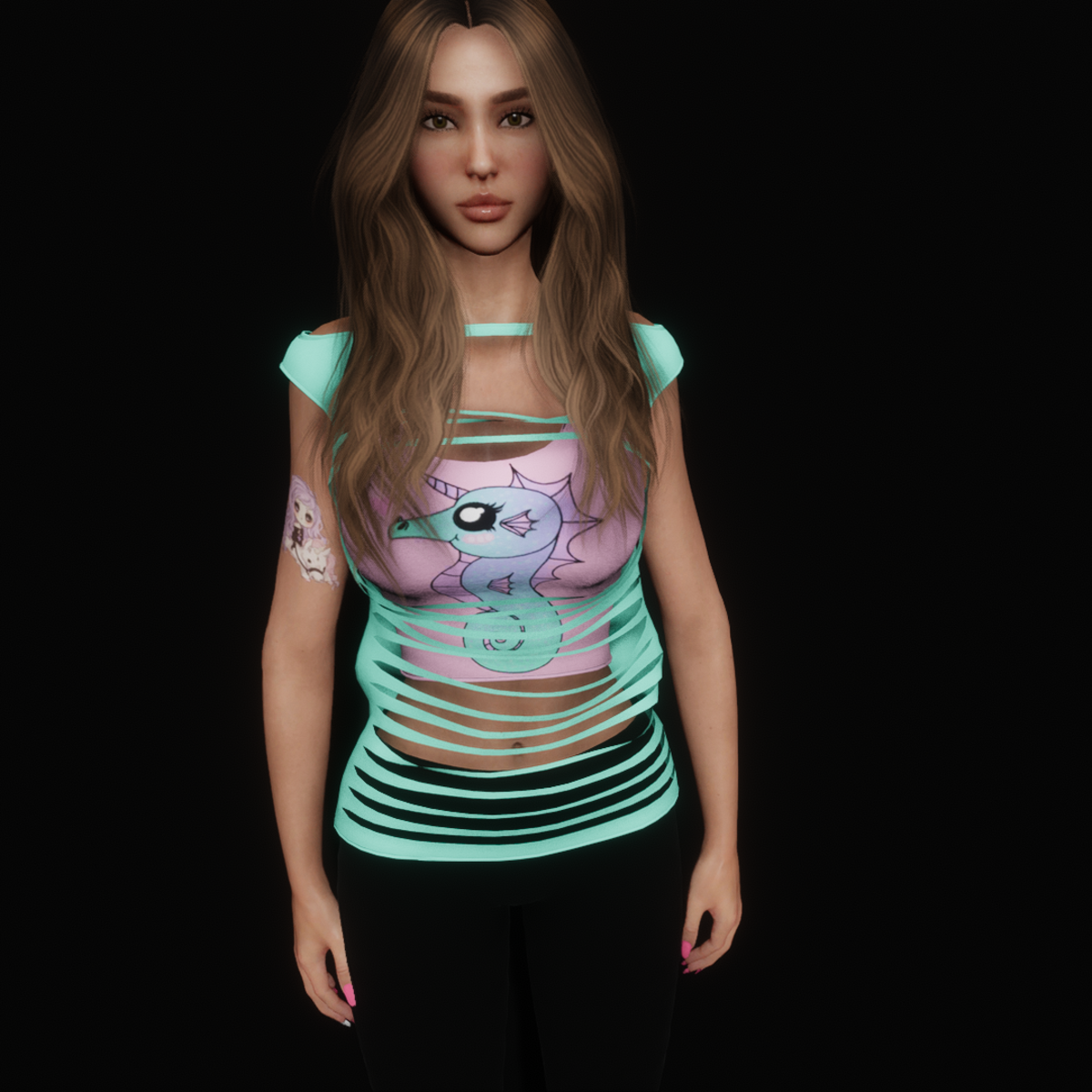 Kawaii seahorse unicorn shirt with ripped blouse.