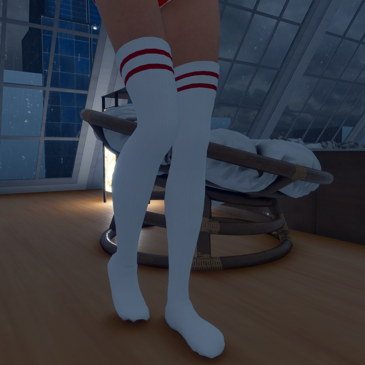 NOTE: COLOURS ARE LIGHTER THAN SHOWN IN PICTURE. PICTURE TAKEN IN A DARKER SCENE... Sexy long and high thigh socks. Has great detail. When you bend or move the socks wont show your knees. If you wear shoes with these make sure to pin the socks down on feet using middle mouse button or simulating with shoes on and push the sock bits showing back in shoe quickly.
