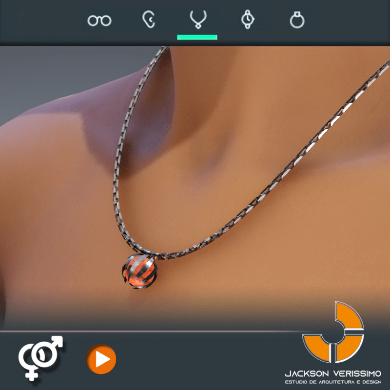 Necklace of Metal with a animated cosmic sphere pendant. 2k PBR textures. This mean that the image of pendant will not pixelate when some user do the zoom camera in this detail. Match with all avatars of Sansar. Maybe a little adjustments if necessary.