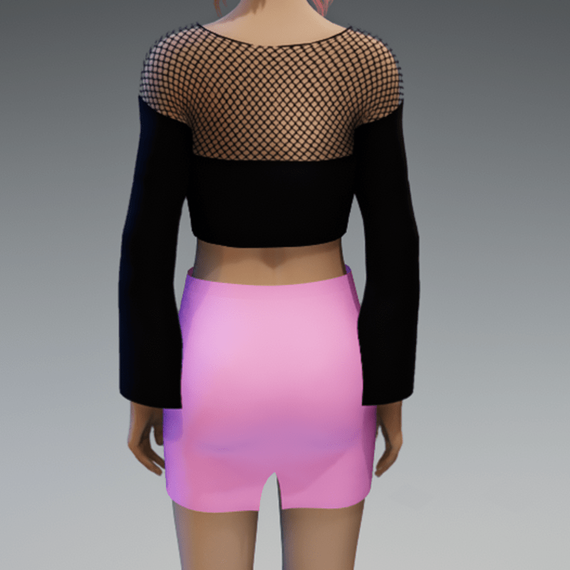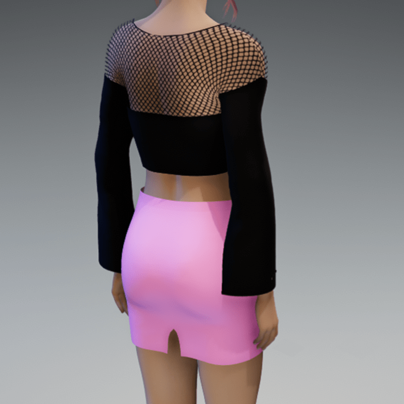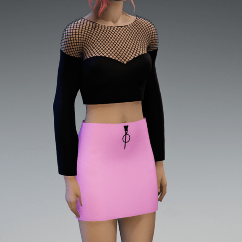 This mini skirt comes with a pink fabric and a black zipper on the front. If you're interested in the top showing in the images, check also my "Black Witchy Crop Top with Fishnet" in my store. Enjoy!