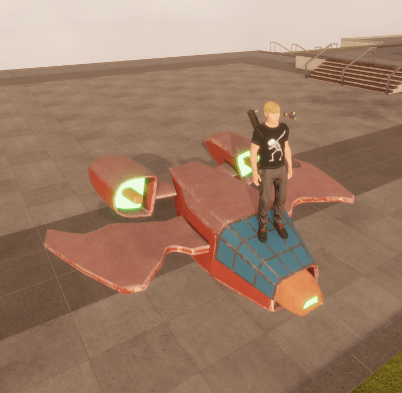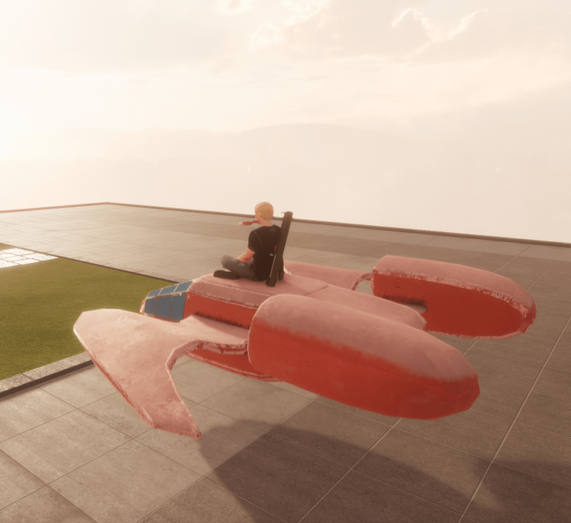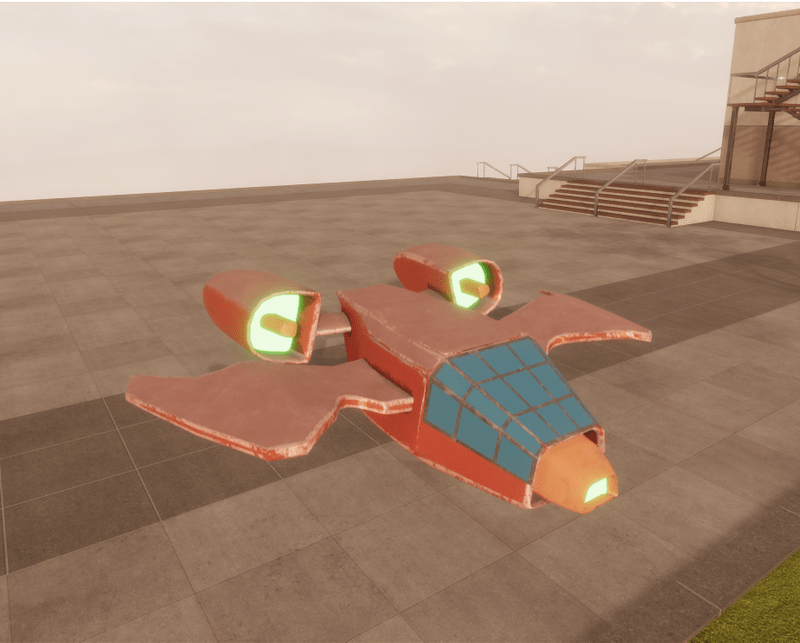 This custom spacecraft has a baked animation causing it to appear as though it's really hovering off the ground! Comes complete with optimized collision mesh so you can sit or ride on it and the engine parts glow green!