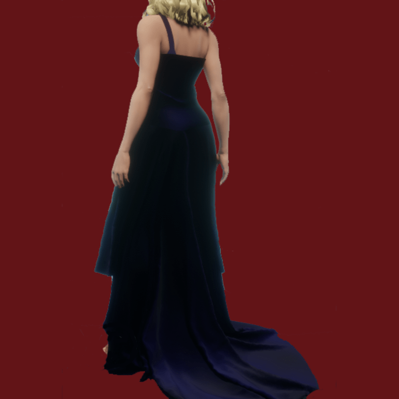 Beth in Deep Blue - A beautiful and special evening gown falling shorter in the front, trailing at the back