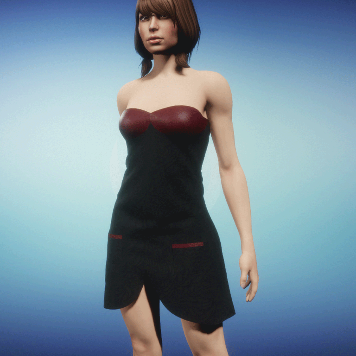 Modern summerdress with leather parts! Please simulate the clothes before wearing to adjust it optimally.