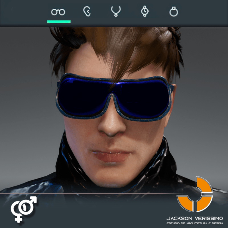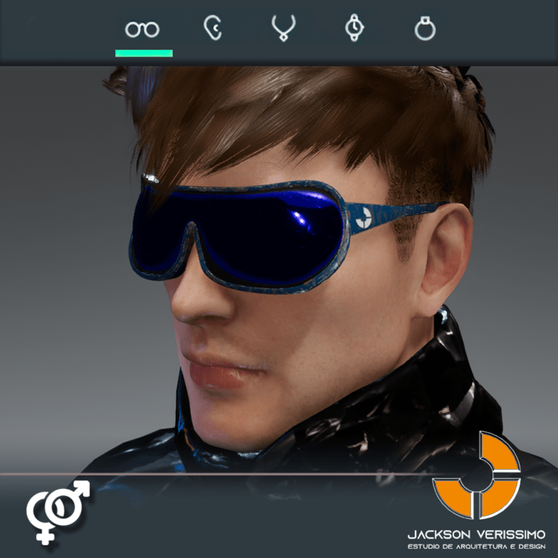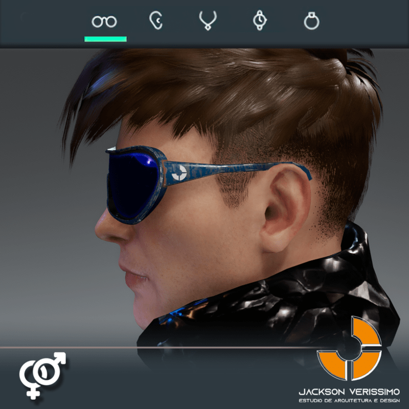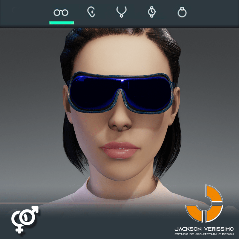 Ai Glasses 1- Blue is a model of glasses designed with Ai. PBR Textures 2 k Match with all avatars in Sansar. Maybe a adjustment for models diferent of Male Default 2.0 avatar of Sansar.