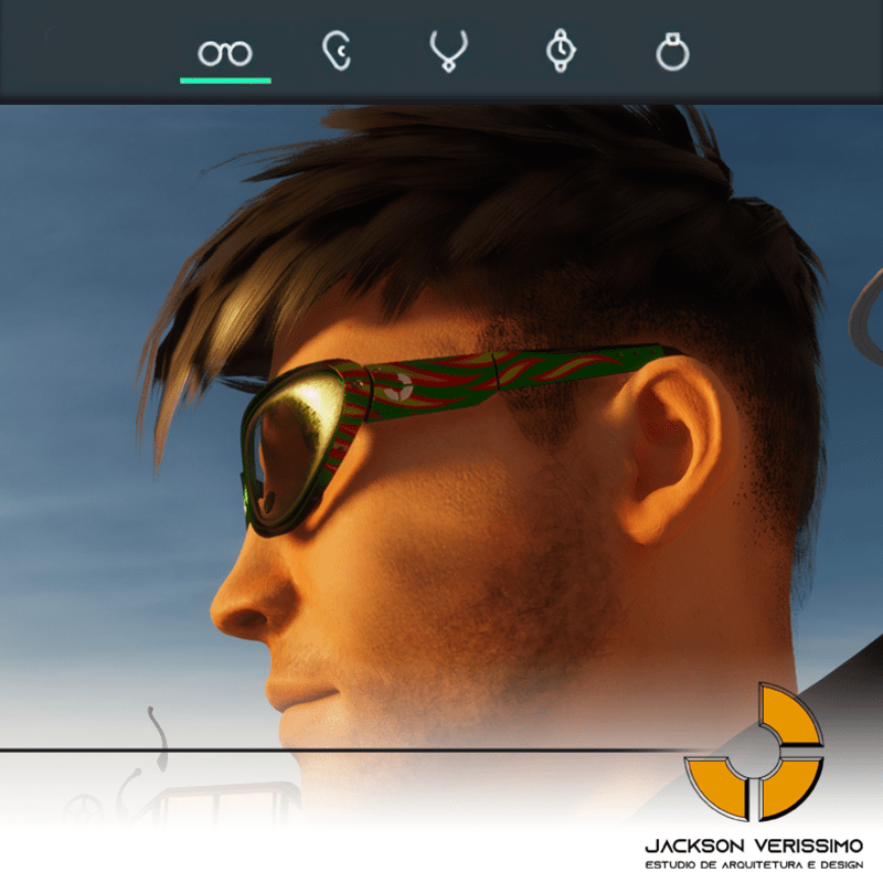 Special design for sunglasses of Aluminium. Original by JackVerissimo. Transparent and Metalic Lens. Frame of Aluminium with flames. Special PBR textures. Unisex. This glasses was designed for Male avatar2.0 but you can use in Female avatars with some adjustments. Match with all humaniods avatars.