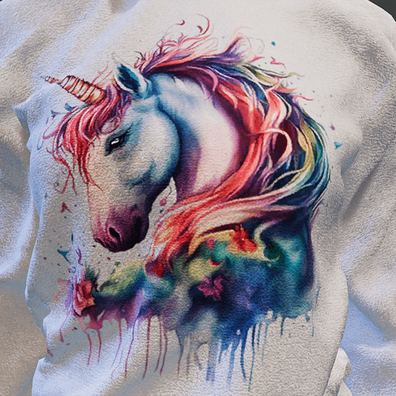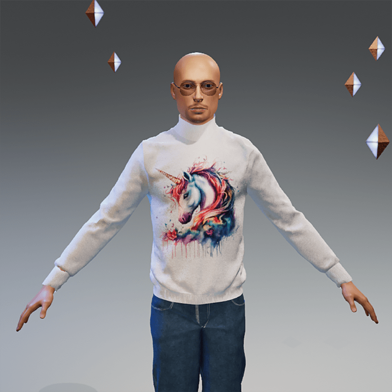 White sweater with unicorn print. Textured fabric quality. Created with female avatar 2.0, fits successfully on male avatar. Please do not forget to rate this item