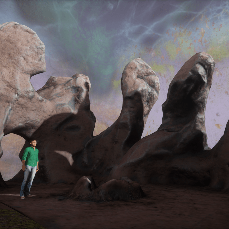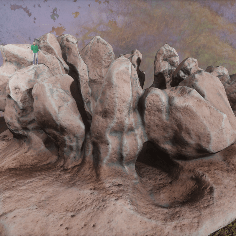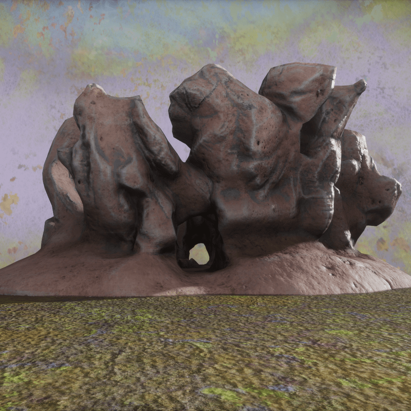 A party of giants were camping for the night around a fire. Thereabout lived a lonely Korrigan who was not up to mischief that night. He started playing the flute from a distance, in the hope of making the party merry. Alas, they started laughing and making fun of the tunes. This angered the Korrigan, who instantly turned all the congregation of giants into stone. Display mesh is 13974 tris, physics mesh is 3596 tris. Texture size is 2048.