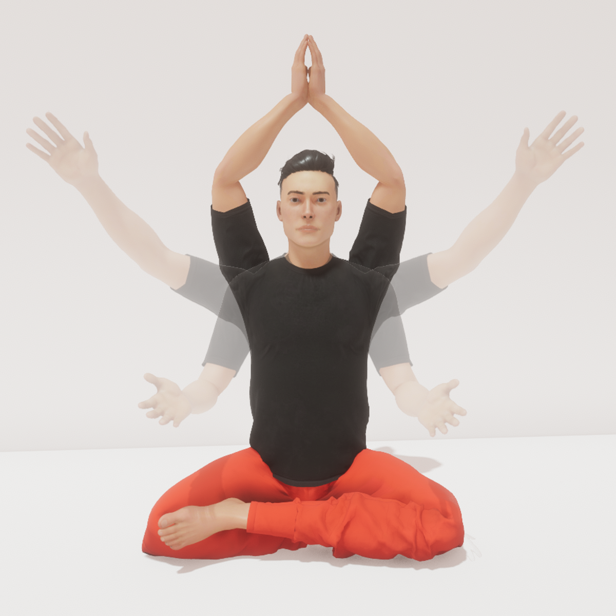meditation animation infinity change between balance and open hands pose male version