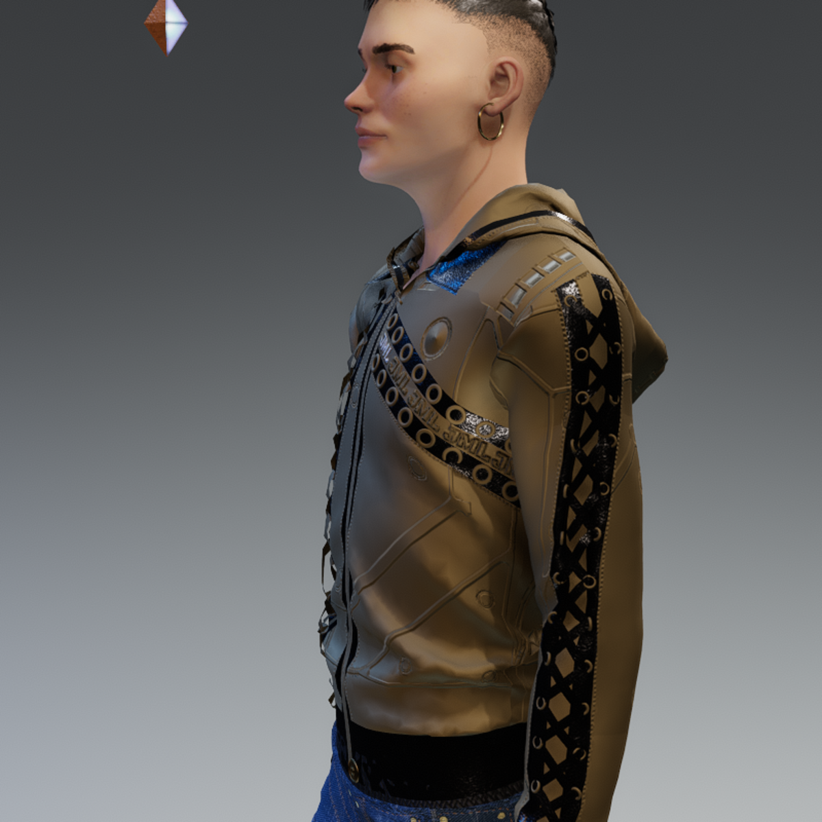This garment is created in Marvelous designer so you can adjust it to look as you like. You can zip or unzip creating different styles fits ALL avatars in the store only a little manipulation if needed