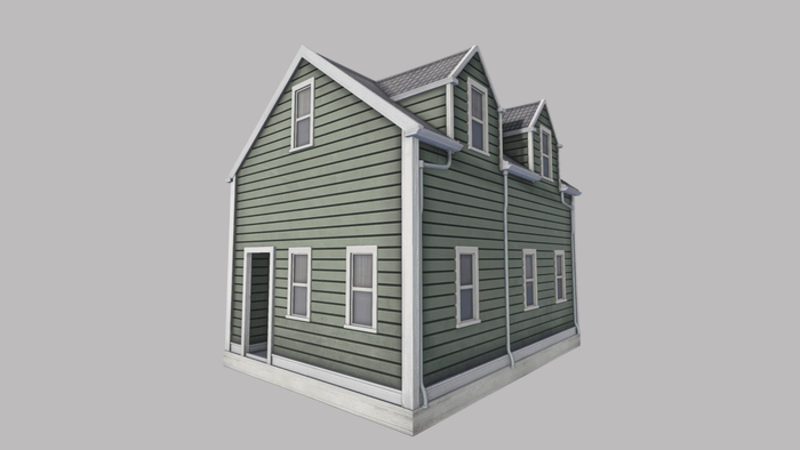 House 01 Decor Medium quality Wooden House created references to a real life building located in boston, with much detail to it, such as dirty wooden green planks, windows, roof with three attic windows, and a small house entrance. Note! that this is not an enterable house, but perfect for decoration on the vast landscape, or in city environments. Low Poly Triangles - 6850 Triangles - 5328 Vertices 4096x4096 PNG Textures - Diffuse, Specular & Normal Textures is created using Photoshop, and has a Diffuse, Normal & Specular to its base.