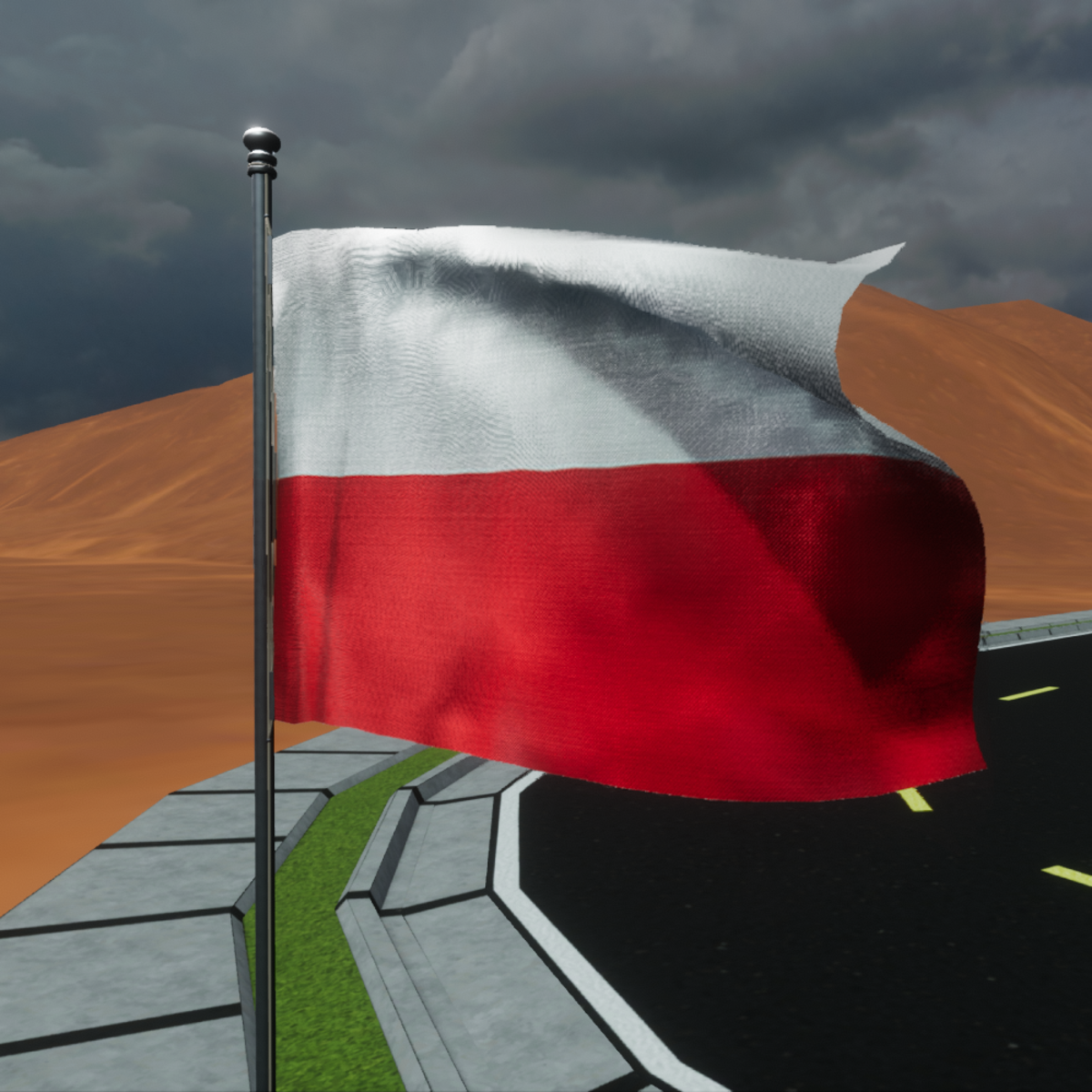 Animated flag of Poland waving in the wind. It is placed on a 4 meter pole. All permissions enabled except meterial flag. Available to view here: https://atlas.sansar.com/experiences/fernandop/full-experience-in-sales-for-exhibitions-and-events Don't forget to rate the product.