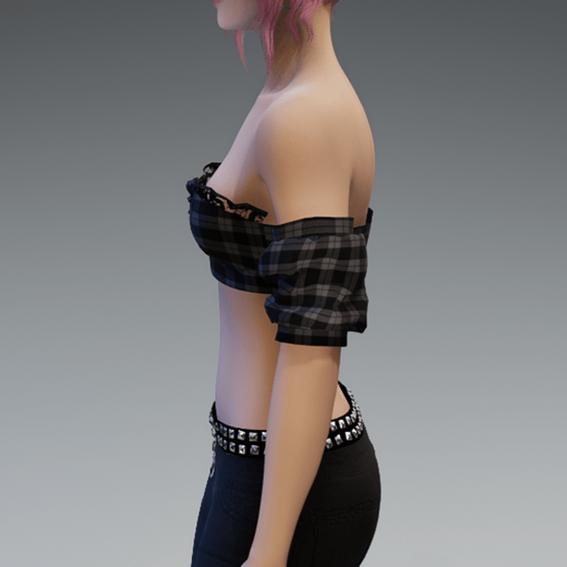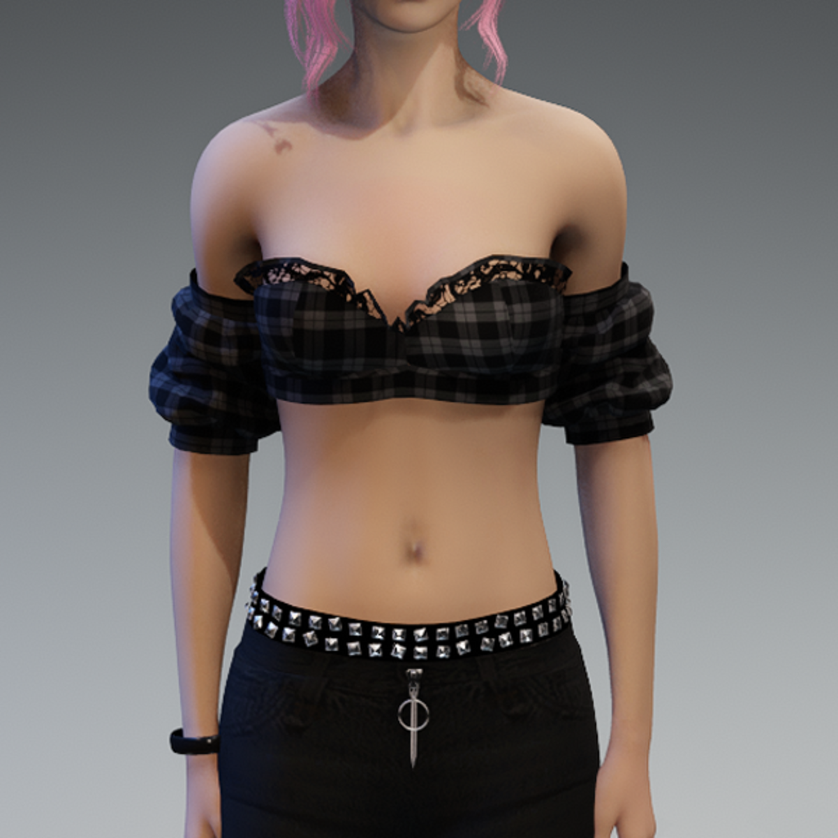 This top comes with some lace applications at the top of the front and a gray checkered fabric. If you want to know how this top would look like on your avatar, feel free to use my 'siggys store' version first before buying this one! Enjoy!