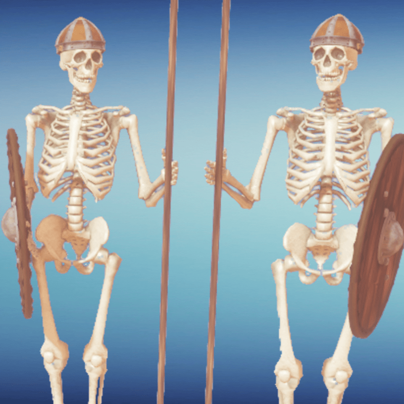 Animated Skeleton with a shield on right hand and a spear on the other. Halloween Decor. No collision. Please do not resize. Smooth animation loop. Movement of left and right version are similar but not identical. https://atlas.sansar.com/experiences/cat/move-your-bones