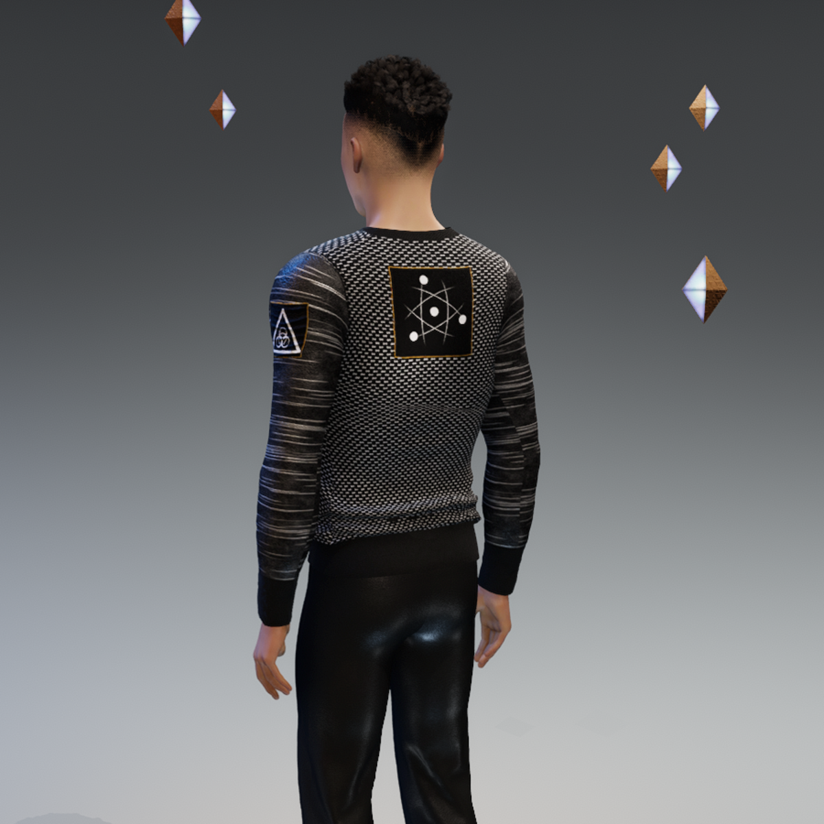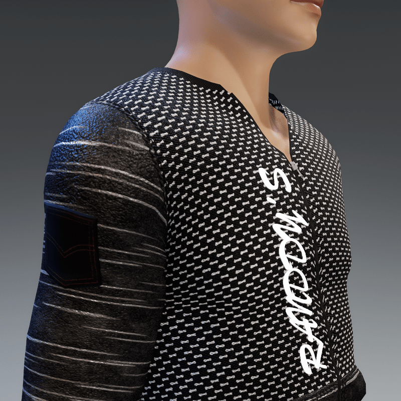 "Unleash your bold style with our cutting-edge men's jacket – a fusion of rugged sophistication and urban cool. Crafted for the fearless trendsetter, this jacket boasts sleek leather sleeves, edgy patches, and a pop of electrifying neon lights. Elevate your street cred and make a statement wherever you go. Dare to be different, embrace the extraordinary. This isn't just a jacket; it's your canvas for self-expression. Grab the spotlight and own the streets with this one-of-a-kind masterpiece. Join the rebellion, ignite the night – because ordinary is overrated. Step into the spotlight, illuminate your style!" Please simulate the clothes before wearing it to adjust it optimally. Visit my store inworld: https://atlas.sansar.com/experiences/randdy/rr-fashion-shop