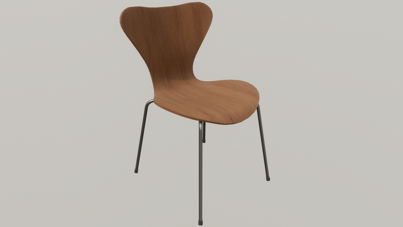 Design Dining Chair - Wood 01 - A The model is inspired by the famous Seven Chair by Danish designer AJ. PBR Textures, and has a low poly physic shape. Standard Sit function applied to the Chair