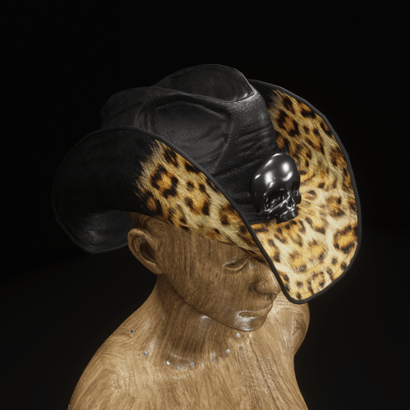 Cowboy hat "Leopard", worn as attachment can be easily resized to fit avatar