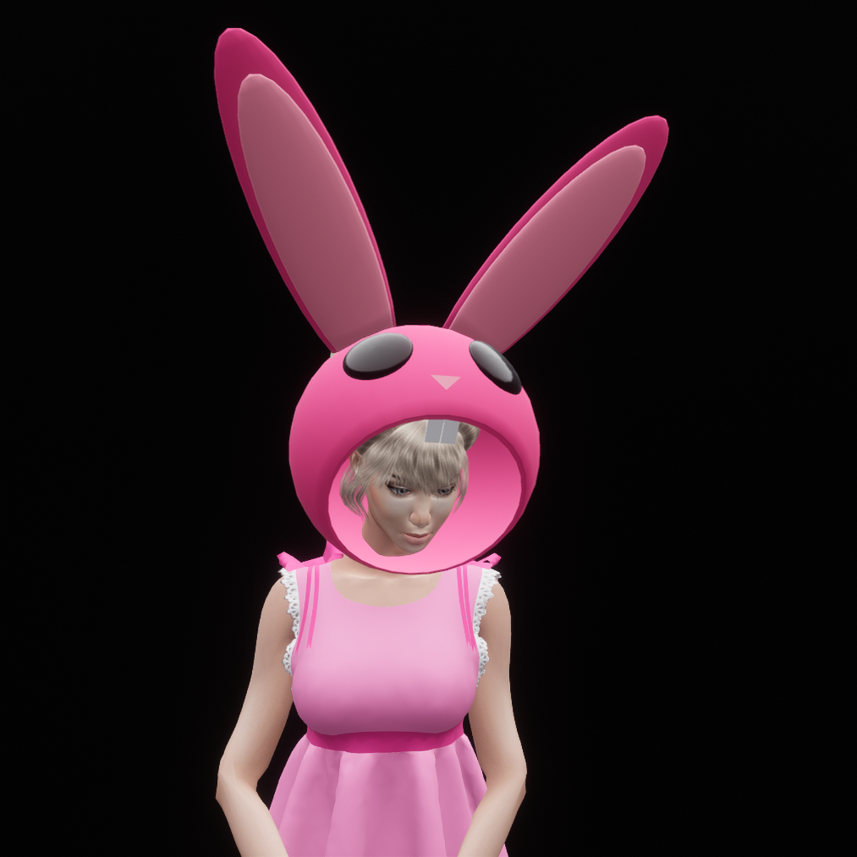 A cute bunny head with a hole for your face. You will need to resize for hair.
