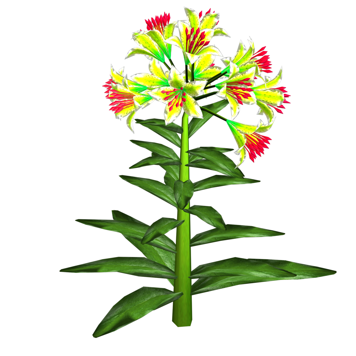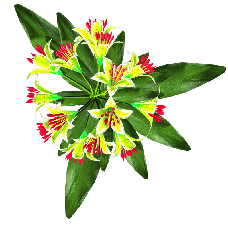 1 Trumpet Lily Plant with about 14 blooming lily flowers and several leaves for your lovely gardens. Polygon count: 15480. There is no collision on this mesh so you can walk through it. I have many colors. To see this flower in Atlas, please visit "LovedWarrior's Ground Plants: https://atlas.sansar.com/experiences/lovedwarrior/lovedwarrior-s-ground-plants" Please note that all my flowers are 100% detailed mesh. Each petal, pollen, stalk and leaf is made by hand and placed by hand. All the textures are also made by me. If you have any flower or plant requests, show me a picture of the flower and I will let you know if I can make it for you. Enjoy!