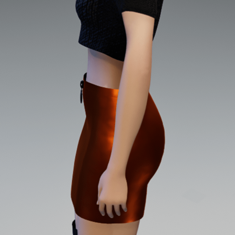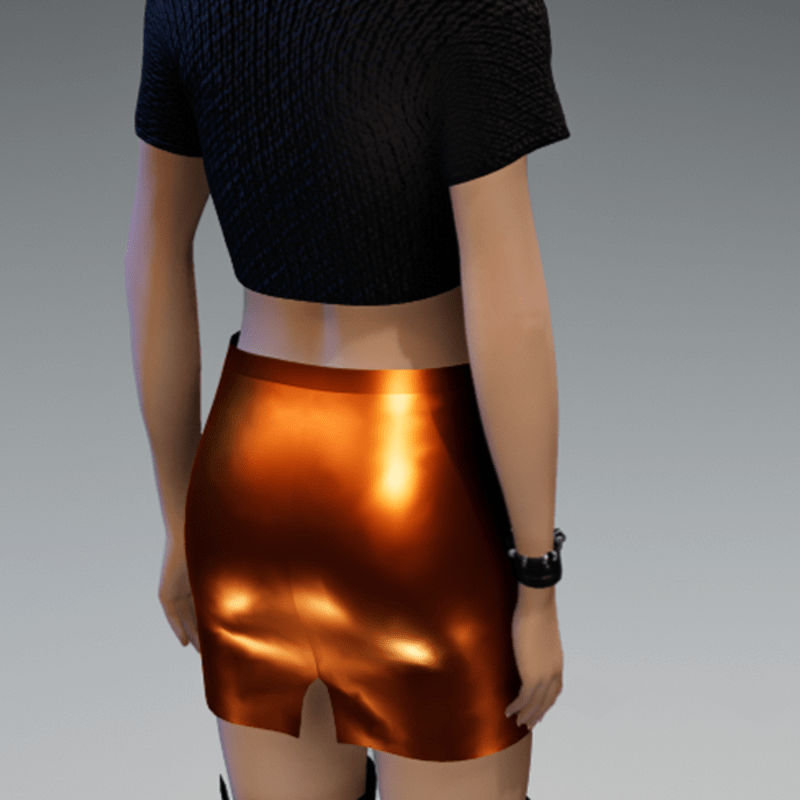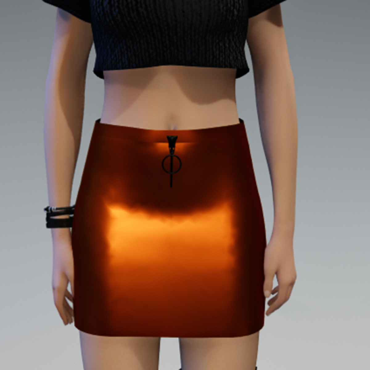 This mini skirt comes with a orange metalic shiny fabric and a black zipper on the front. If you're interested in the top showing in the images, check also my "Basic black short Girlie knitted" in my store. Enjoy!