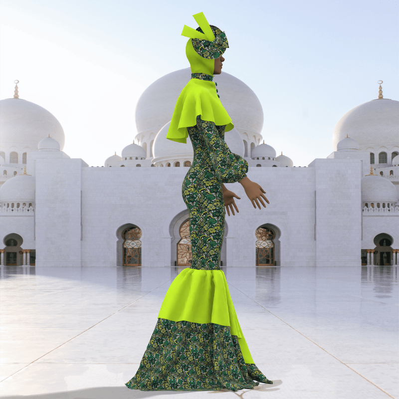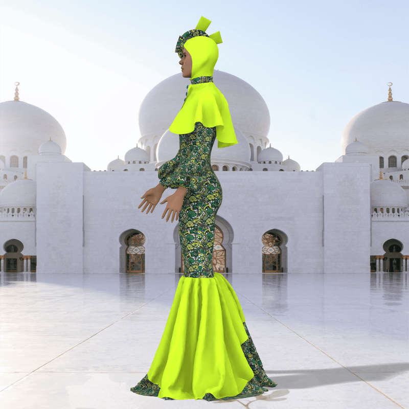 Do you want to celebrate EID on Sansar Here is a Female cloth for EID with African fabric, a hijab and a fascinator by the side. It is a long flowing gown with nice aesthetics, the cloth may appear with darker shades when stimulated. Made on the default avatar Stimulate and Enjoy EID MUBARAK