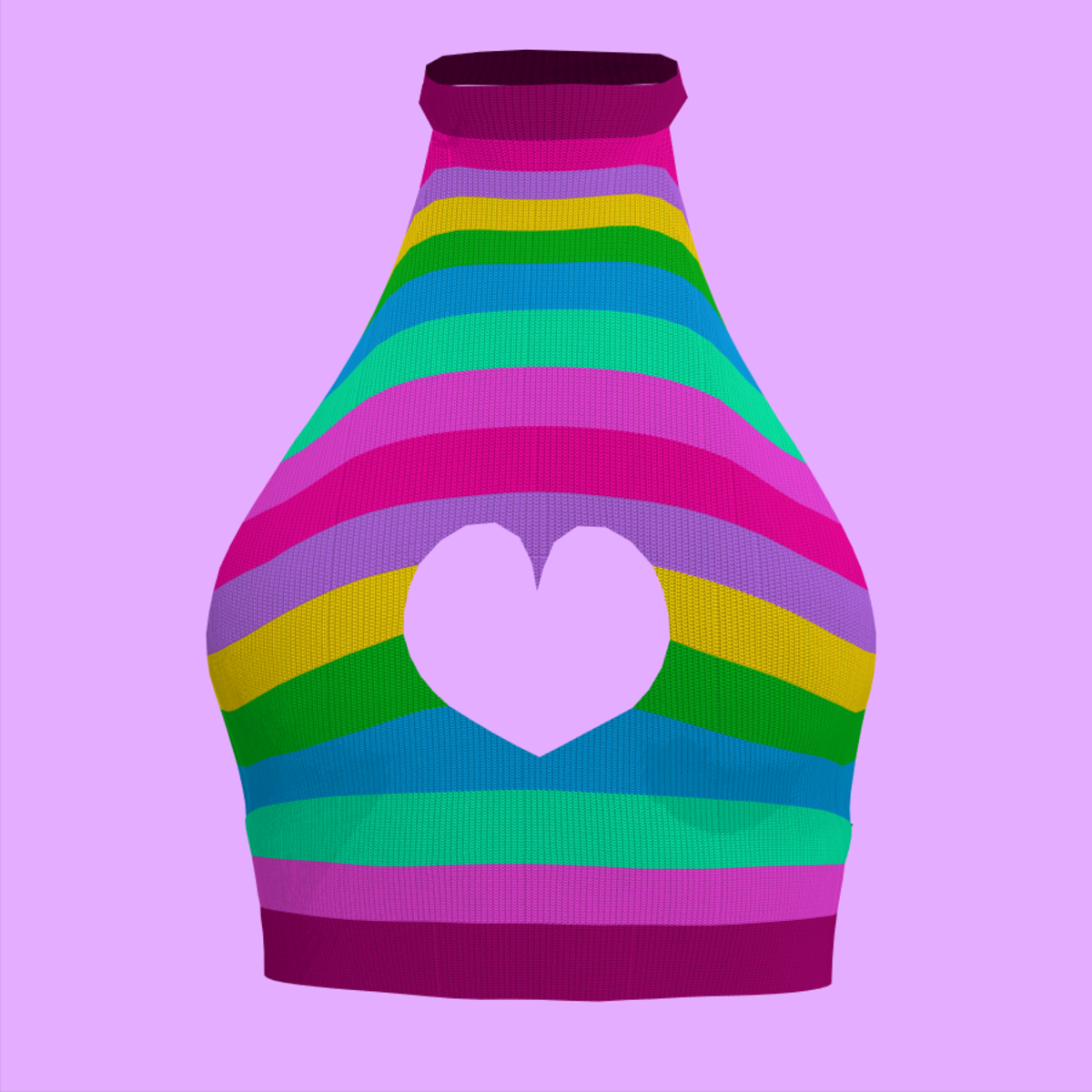 This cropped halter top is bursting with detail. -Knitted -Rainbow -Heart cut out This halter top is so cute and looks so realistic and the textures do not change even when your in the nexus!-----> check the second image out for proof :)