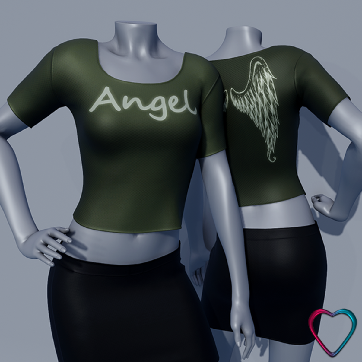 Bring a touch of divine elegance to your collection with our "Angel" T-shirt. Proudly displaying the word "Angel" on the front and featuring beautiful angel wings printed on the back, this fitted crop top is designed to capture the essence of celestial grace. Available in 16 vibrant colors, each T-shirt offers the perfect blend of comfort and style, making it ideal for various occasions. Pair it with the matching skirt for a complete and harmonious look, or mix and match colors to create your own unique style. ------------------------------ Technical Details: - Material: Stretchy and breathable fabric for optimal comfort - Design: High-definition print of the word "Angel" and angel wings - Colors: 16 vibrant and durable color options ------------------------------ You can see them in Sansar here: https://atlas.sansar.com/experiences/morganeparis/mpp-mainstore PS: I created it from scratch. I hope you like it. Enjoy and Keep Good Vibes. Hugs from Morgane.