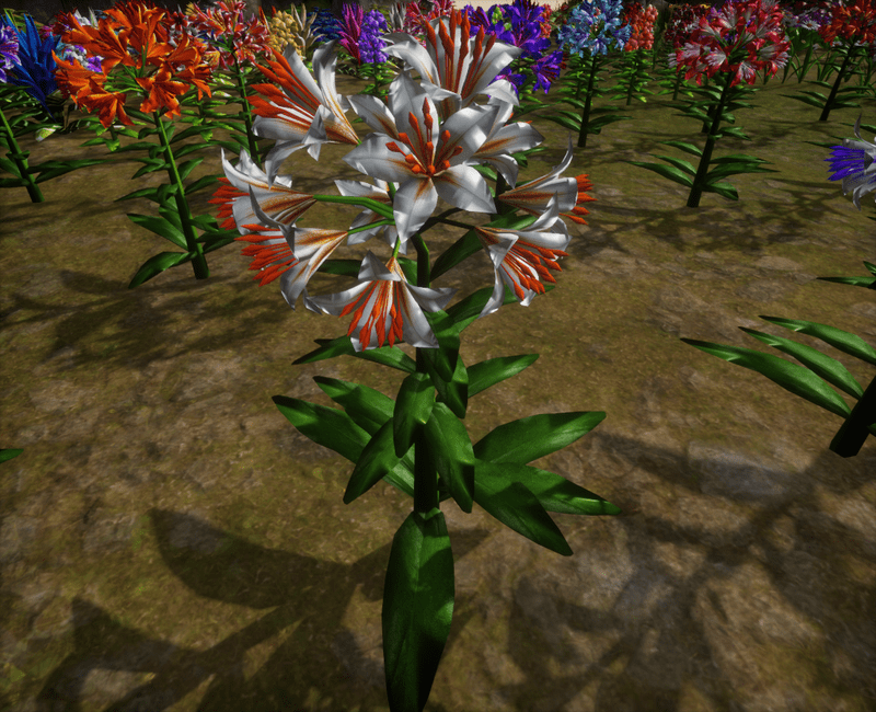 1 Trumpet Lily Plant with about 14 blooming lily flowers and several leaves for your lovely gardens. Polygon count: 15480. There is no collision on this mesh so you can walk through it. I have many colors. To see this flower in Atlas, please visit "LovedWarrior's Ground Plants: https://atlas.sansar.com/experiences/lovedwarrior/lovedwarrior-s-ground-plants" Please note that all my flowers are 100% detailed mesh. Each petal, pollen, stalk and leaf is made by hand and placed by hand. All the textures are also made by me. If you have any flower or plant requests, show me a picture of the flower and I will let you know if I can make it for you. Enjoy!