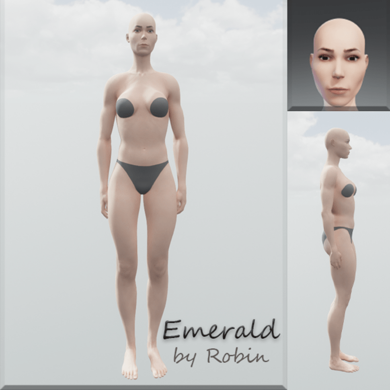 Female avatar "Emerald" with brown eyes. Avatar does not include hair, clothing or accessories.- More photos on the Sansar store site.