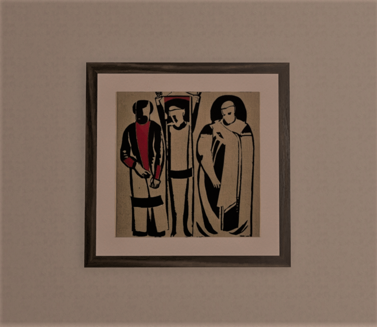 Constructivist woodblock print with matte and wooden frame See here: https://atlas.sansar.com/experiences/captcha-2893/private-gallery
