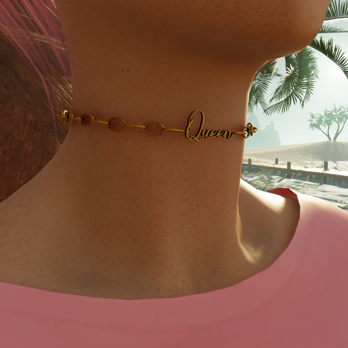 cute choker, it is rigged to the neck so avatars with thicker necks may not be able to wear it, rigged on the default avatar so the neck thickness isnt really skinny to start out with. More chokers to come :D comes in multiple colours.